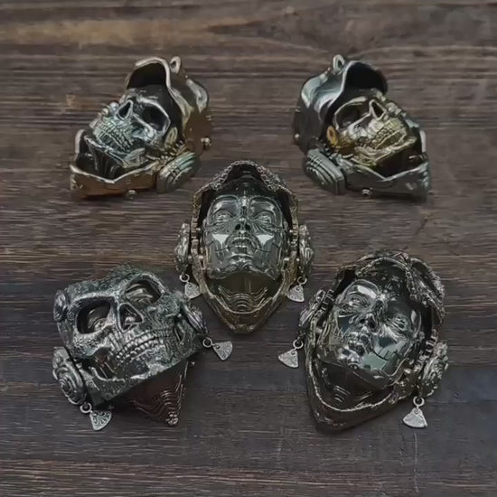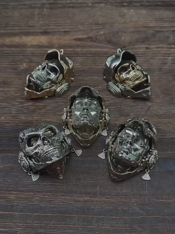 This handcrafted mechanical mask blends industrial precision with artistic detail. Made from bronze and cupronickel, it features a delicate contrast between matte bronze tones and bright metallic luster. Every curve and engraving reflects patience, craftsmanship, and the poetry of mechanical beauty.